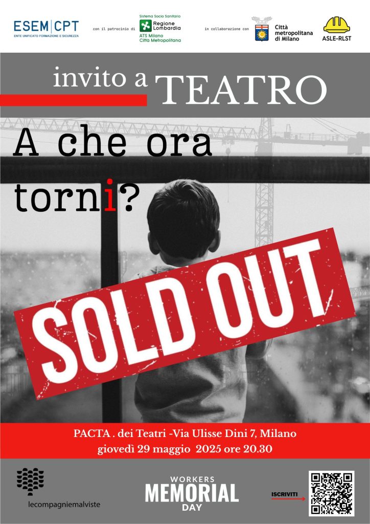 Diffondere la cultura della sicurezza con uno spettacolo teatrale. Organizzato da ESEM-CPT, con il patrocinio di ATS Milano e in collaborazione con Città Metropolitana di Milano e con Le Compagnie Malviste, “A che ora torni?” è uno studio teatrale che affronta il tema degli infortuni sul lavoro.
